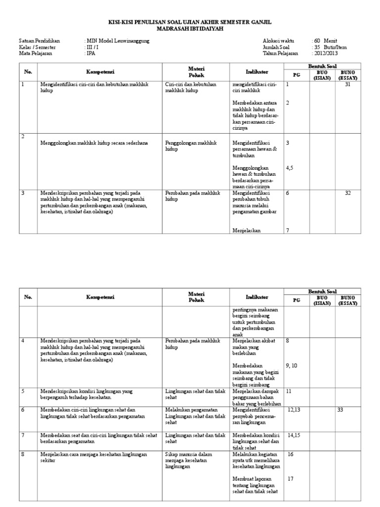 Menyusun soal ujian yang berkualitas adalah fondasi penting dalam proses evaluasi pembelajaran. Bagi guru kelas 3 SD, khususnya pada mata pelajaran Ilmu Pengetahuan Alam (IPA) di semester 2, pembuatan kisi-kisi soal menjadi langkah krusial untuk memastikan bahwa penilaian yang dilakukan akurat, relevan, dan mencakup seluruh materi yang telah diajarkan. Kisi-kisi soal berfungsi sebagai peta jalan bagi guru dalam merancang instrumen penilaian yang efektif, sehingga hasil evaluasi dapat menjadi dasar yang kuat untuk mengukur pencapaian belajar siswa dan merancang strategi pembelajaran selanjutnya.