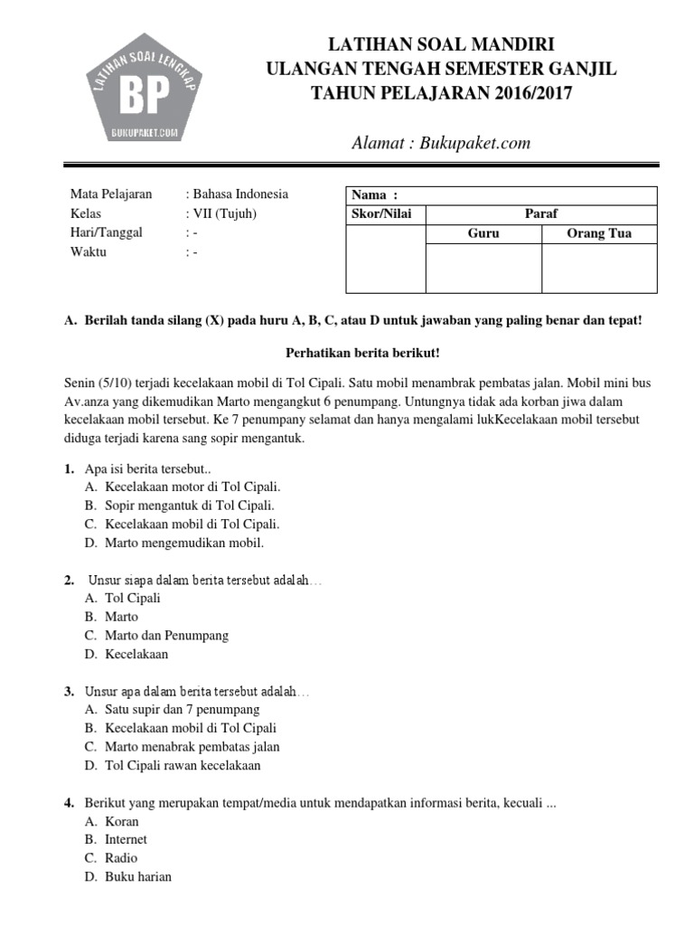 Artikel ini akan mengupas tuntas berbagai aspek yang mungkin muncul dalam soal UTS Semester 2 Bahasa Indonesia kelas 7. Kita akan membahas tipe-tipe soal yang umum ditemui, memberikan contoh soal yang relevan, serta menyajikan tips jitu agar siswa dapat mempersiapkan diri dengan optimal dan meraih hasil terbaik. Dengan pemahaman yang baik tentang apa yang diharapkan, siswa dapat lebih percaya diri dan fokus dalam menghadapi ujian.